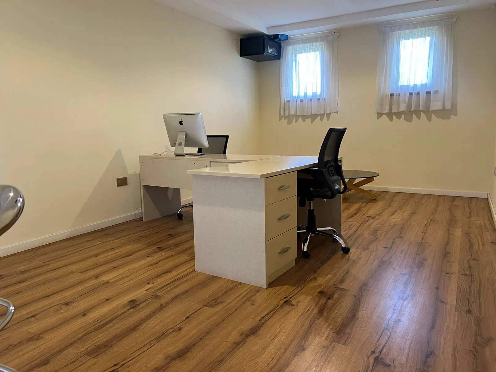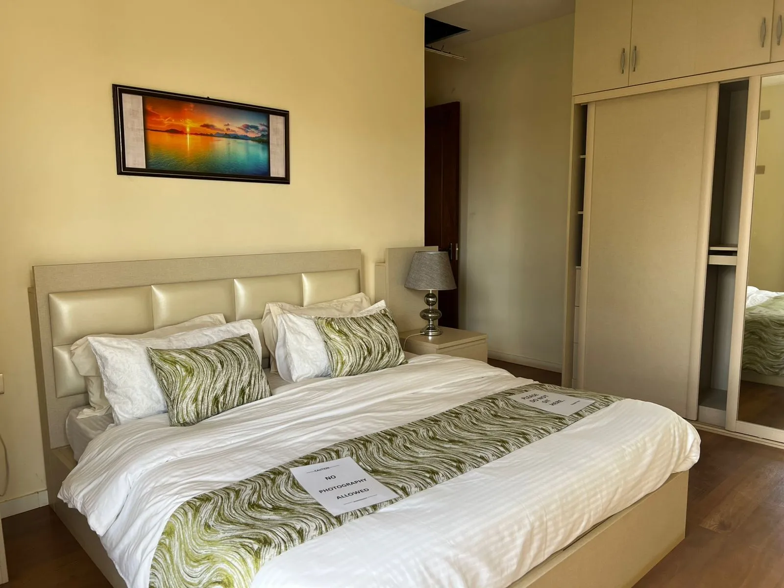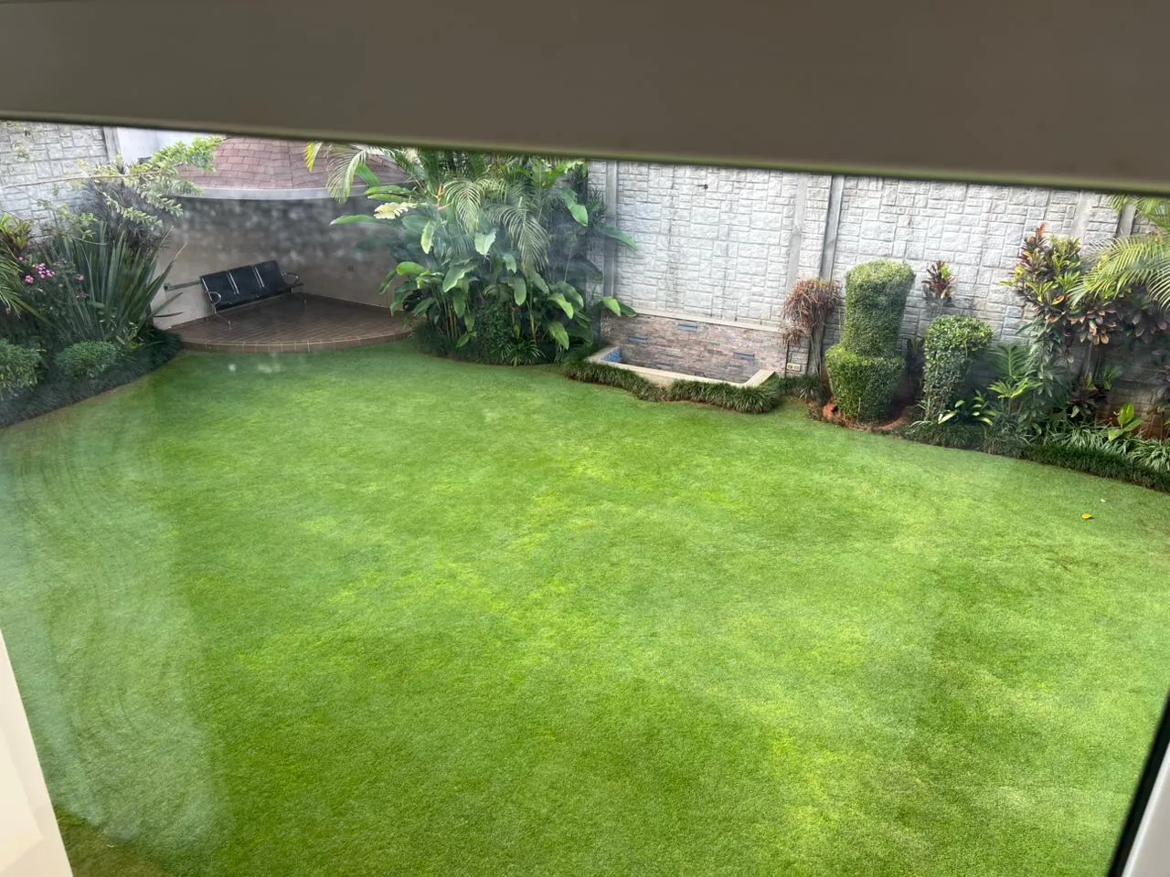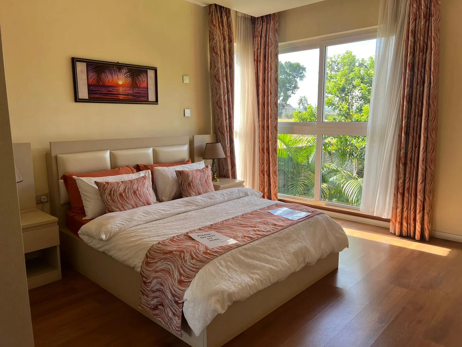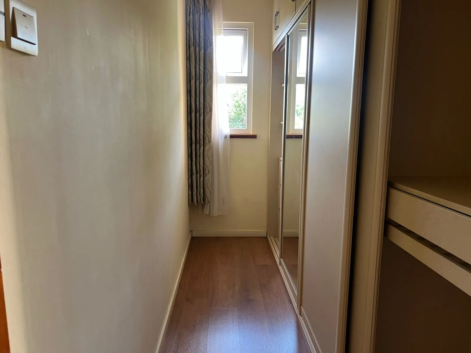 4 bedroom spacious townhouse for sale in Runda, featuring a spacious study room on the last floor. All bedrooms are ensuite, with a cloakroom on the lower floor. The house includes a well-equipped kitchen and modern bathrooms. The upper floor hosts a family room and a balcony. Additional features include a well-manicured garden, solar, and a carport. The property offers a beautiful view of a lake from the house.