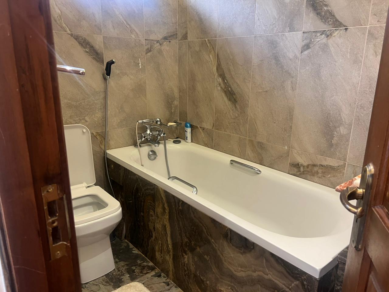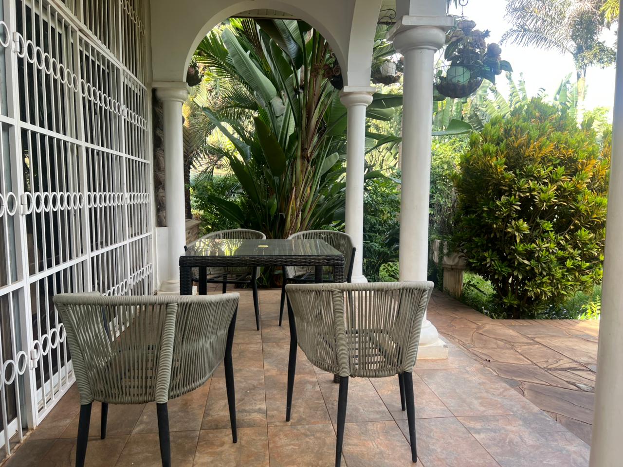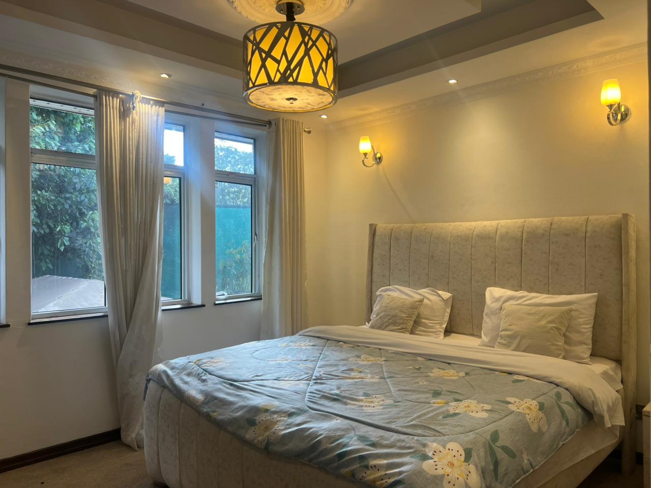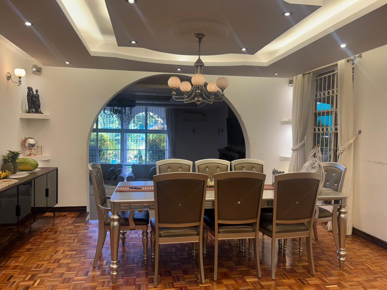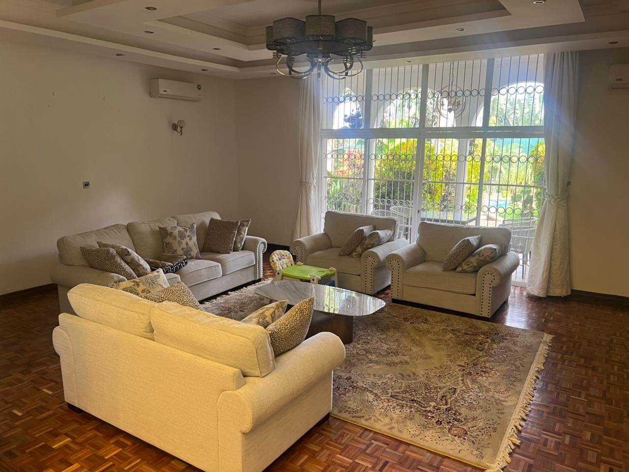 5 bedroom Ambasadorial standalone house with very well finished interiors. It features a modern kitchen and bathroom, a spacious living area opening to a lush garden, and an open concept kitchen. There is also a cloakroom, spacious bedrooms, a garage, pool, and waterfall.